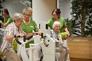 Gemäss ärztlicher Verordnung steht Ihnen die Beanspruchung von einer externen Physiotherapie, welche ins Haus kommt, zur Verfügung (z.B. im Therapieraum im GG oder im Fitnessraum im GG).